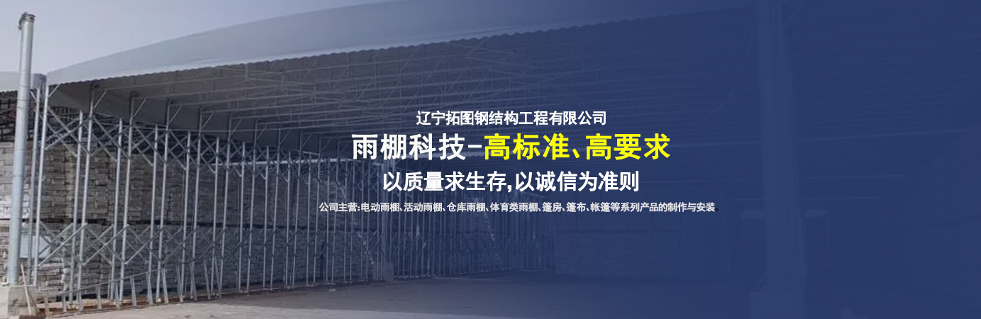 遼寧拓圖鋼結(jié)構(gòu)工程有限公司是一家專(zhuān)業(yè)從事推拉篷設(shè)計(jì)、制作、安裝、使用、維修的綜合性公司。公司主營(yíng):電動(dòng)雨棚、活動(dòng)雨棚、倉(cāng)庫(kù)雨棚、體育類(lèi)雨棚、篷房、篷布、帳篷等系列產(chǎn)品的制作與安裝。 遼寧拓圖鋼結(jié)構(gòu)工程有限公司堅(jiān)持以市場(chǎng)為導(dǎo)向,以科技創(chuàng)新為動(dòng)力,以質(zhì)量求生存,以誠(chéng)信為準(zhǔn)則,倡導(dǎo)求實(shí)、進(jìn)取、創(chuàng)新的企業(yè)精神。“科學(xué)的管理、嚴(yán)謹(jǐn)?shù)脑O(shè)計(jì)、 的制作安裝、嚴(yán)格的質(zhì)量檢測(cè)、良好的后期服務(wù)成就企業(yè)的信譽(yù),為您提供優(yōu)質(zhì)服務(wù)。 遼寧拓圖鋼結(jié)構(gòu)工程有限公司傾力于開(kāi)發(fā)應(yīng)用三維空間結(jié)構(gòu)與新材料的結(jié)合,將廣告藝術(shù)視覺(jué)表現(xiàn)形式與張力膜材科學(xué)的結(jié)合,推出多彩推拉蓬,依靠先進(jìn)的科學(xué)技術(shù),將推拉蓬建筑表現(xiàn)形式無(wú)限延伸,立志走在建筑科學(xué)的前沿,引導(dǎo)建筑時(shí)尚潮流,我們的目標(biāo)是使推拉蓬建筑在中國(guó)發(fā)展壯大。 遼寧拓圖鋼結(jié)構(gòu)工程有限公司憑著極強(qiáng)的事業(yè)熱情和豐富的專(zhuān)業(yè)經(jīng)驗(yàn)以“勤勉進(jìn)取、銳意創(chuàng)新、至誠(chéng)至信”的精神使公司得到迅速健康發(fā)展,業(yè)務(wù)范圍遍及全國(guó)。科學(xué)的管理、嚴(yán)謹(jǐn)?shù)脑O(shè)計(jì)、高標(biāo)準(zhǔn)的制作安裝流程,嚴(yán)格把控產(chǎn)品質(zhì)量,熱誠(chéng)的售后服務(wù)是企業(yè)競(jìng)爭(zhēng)力的源泉。 遼寧拓圖鋼結(jié)構(gòu)工程有限公司人愿以最誠(chéng)摯的態(tài)度,歡迎廣大客戶(hù)的蒞臨與溝通!愿為市場(chǎng)提供優(yōu)...